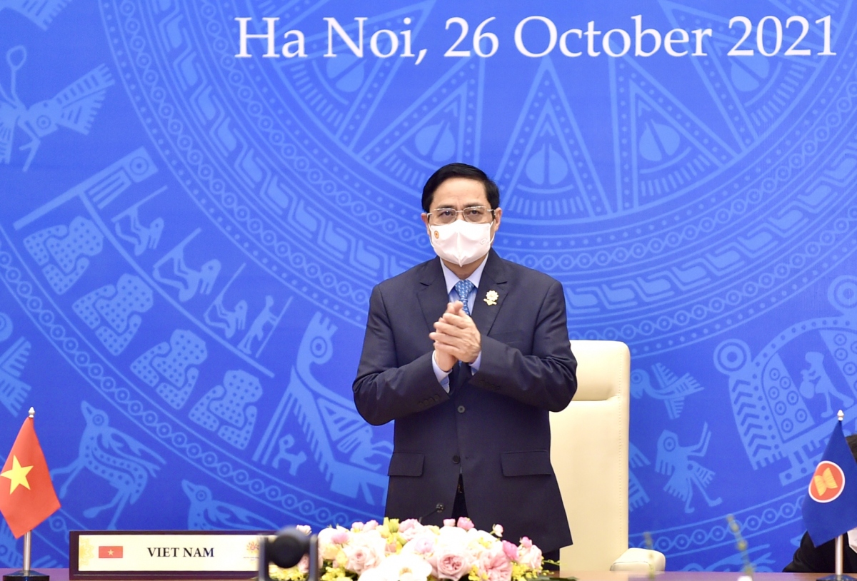 Thủ tướng tham dự trực tuyến Hội nghị cấp cao Hiệp hội Các quốc gia Đông Nam Á (ASEAN) lần thứ 38 và 39 và các hội nghị liên quan do Brunei tổ chức. Ảnh: VGP