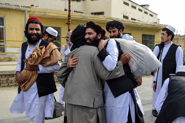 Tù nhân Taliban sau khi được trả tự do. (Ảnh: AFP/TTXVN)