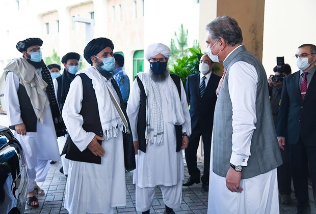 Phái đoàn Taliban tham gia hòa đàm với Chính phủ Afghanistan ở Pakistan. (Ảnh: AFP/TTXVN)