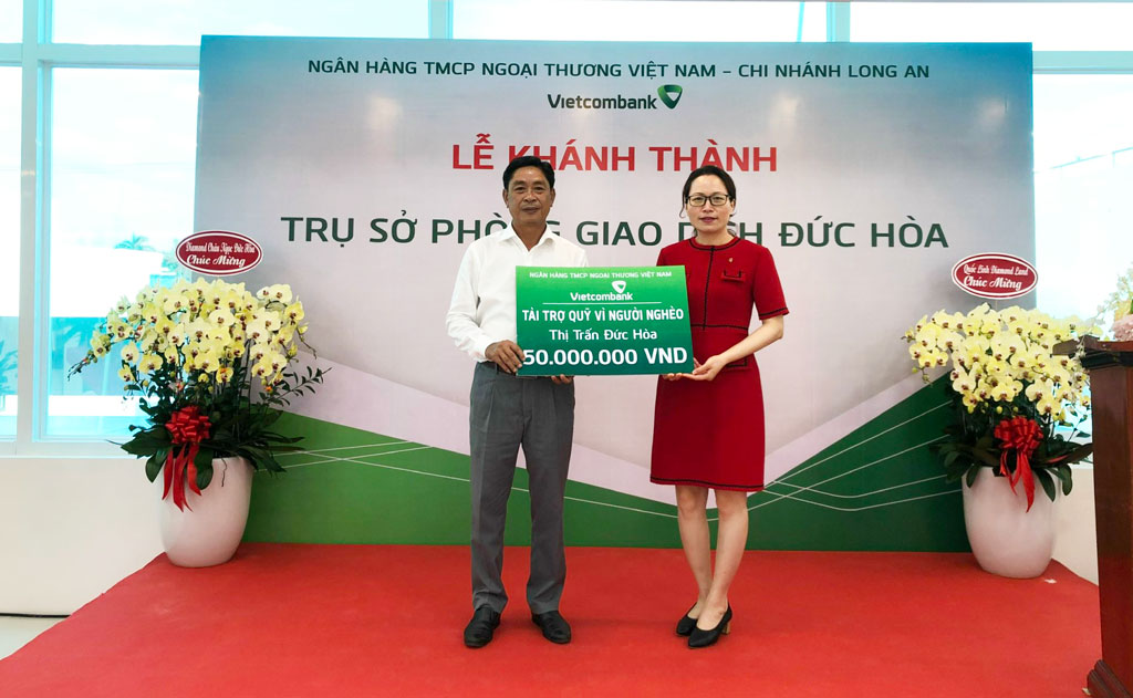 Dịp này, Vietcombank Long An cũng trao 50 triệu đồng cho Quỹ Vì người nghèo thị trấn Đức Hòa./.