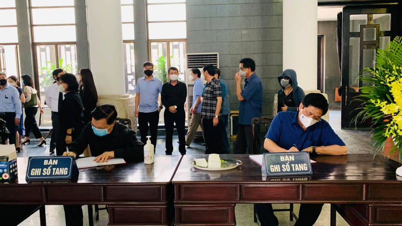 | TBT Báo điện tử Đảng Cộng sản Việt Nam, TS Trần Doãn Tiến (bên phải ảnh) ghi sổ tang sau lễ viếng |