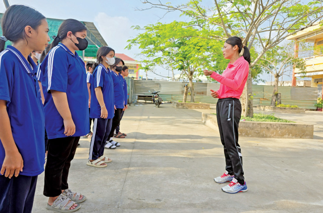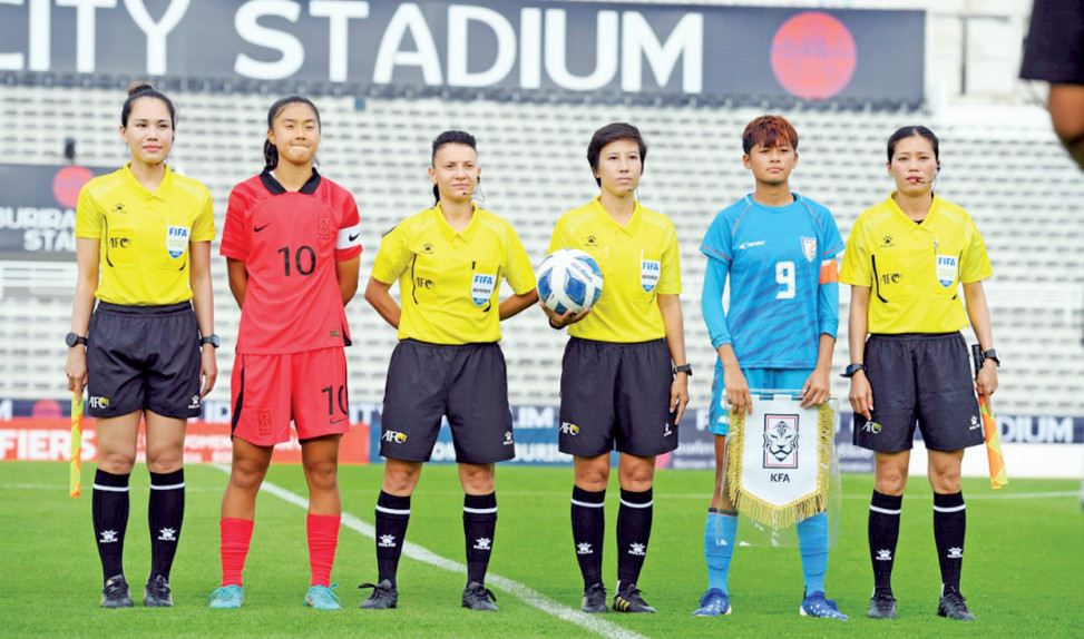 Chị Nguyễn Thị Hằng Nga (bìa phải) hiện tại là nữ trợ lý trọng tài bóng đá quốc tế (FIFA)