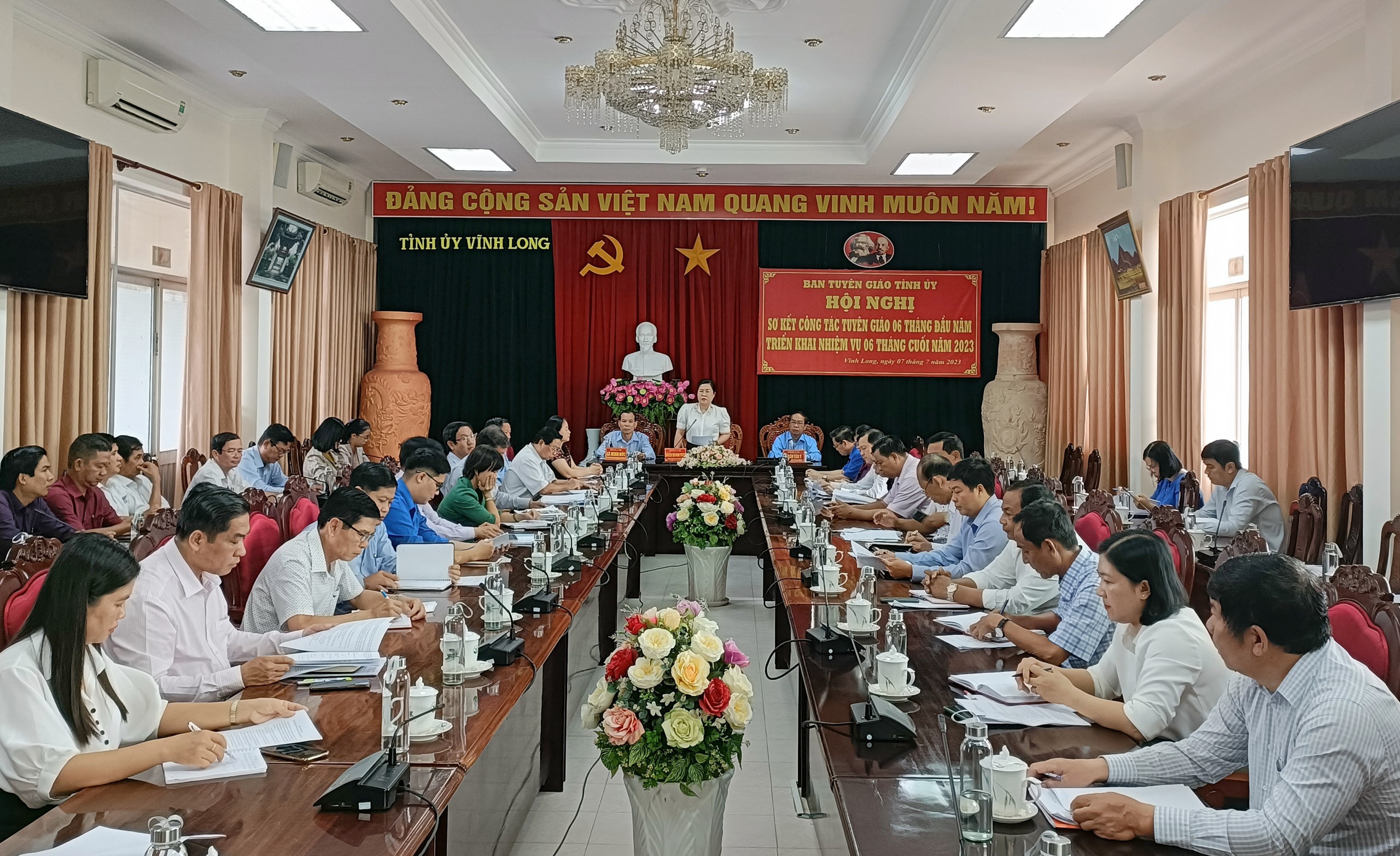 Theo đó, trong 06 tháng đầu năm 2023, hệ thống tuyên giáo các cấp trên địa bàn tỉnh Vĩnh Long đã nêu cao tinh thần trách nhiệm, sáng tạo, đổi mới, nỗ lực phấn đấu, hoàn thành tốt các công việc theo kế hoạch và các công việc đột xuất cấp ủy giao. Công tác định hướng, cung cấp thông tin tuyên truyền chủ trương, đường lối của Đảng, chính sách pháp luật của Nhà nước, các nghị quyết, chỉ thị, kết luận của Đảng trên tất cả các lĩnh vực, các sự kiện trọng đại, kỷ niệm các ngày lễ lớn, công tác phòng, chống dịch COVID-19 trên địa bàn tỉnh được đẩy mạnh, góp phần nâng cao nhận thức, tạo được sự đồng thuận, thống nhất cao trong nội bộ Đảng và nhân dân. Hoạt động báo chí, xuất bản, văn hóa, văn nghệ diễn ra đúng định hướng, đúng tôn chỉ mục đích bám sát chỉ đạo của Trung ương và cấp ủy các cấp. Công tác dự báo, nắm, báo cáo, phản ánh tình hình dư luận xã hội được thực hiện tốt, nhiều vấn đề dư luận quan tâm, bức xúc được giải quyết kịp thời.