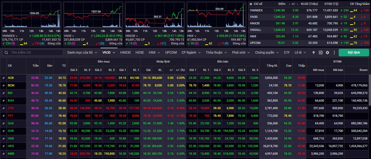 Kết thúc phiên giao dịch ngày 26/4, VN-Index tăng 5,95 điểm (0,57%) lên mức 1.040,80 điểm