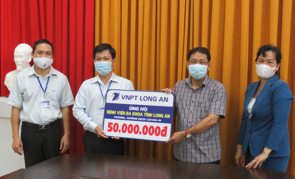 Trước diễn biến phức tạp của dịch bệnh Covid-19, VNPT Long An quyết định dành một phần nguồn quỹ Chính sách xã hội của đơn vị hỗ trợ 50 triệu đồng cho Bệnh viện Đa khoa Long An mua sắm dụng cụ bảo hộ cho y, bác sĩ, nhân viên y tế ở bệnh viện để phòng bệnh, giảm thiểu lây lan và ngăn chặn thành công dịch bệnh, góp phần bảo vệ sức khỏe cho nhân dân trên địa bàn tỉnh.