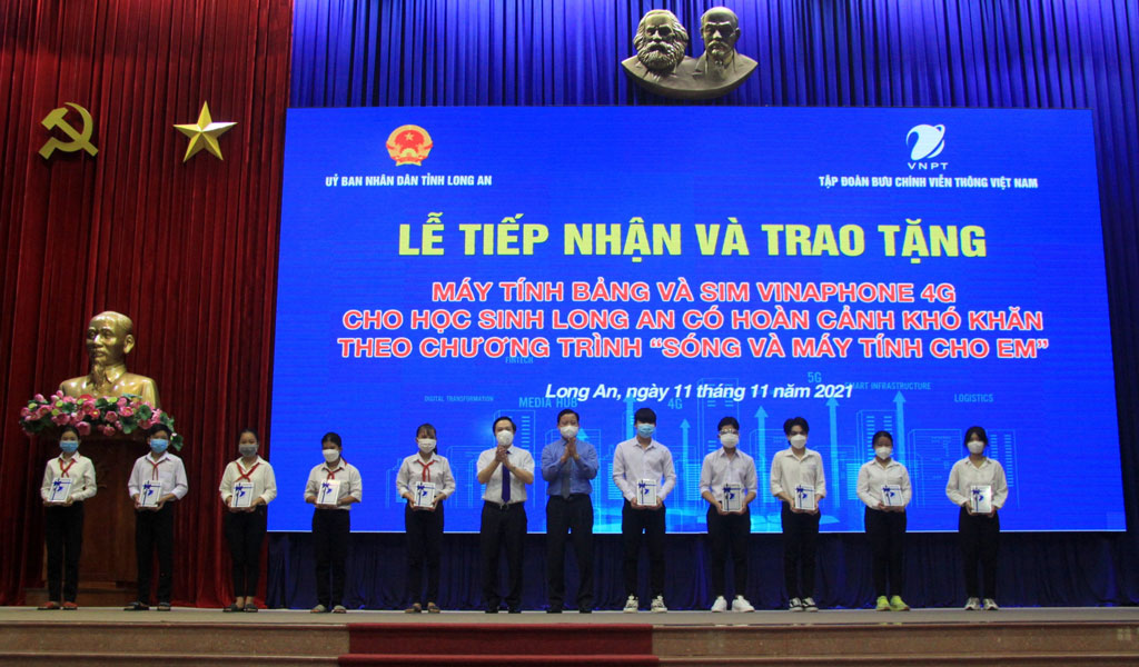 Ngày đầu tháng 11/2021, Tập đoàn VNPT đã là doanh nghiệp đầu tiên thực hiện cam kết trao tặng 2.687 máy tính bảng cho các em học sinh tại tỉnh Long An, những chiếc máy tính bảng đầu tiên của chương trình “Sóng và máy tính cho em” được VNPT trao tận tay cho các học sinh thuộc diện hộ nghèo, hộ cận nghèo; học sinh có hoàn cảnh khó khăn do ảnh hưởng của dịch Covid-19; con trong gia đình có ba hoặc mẹ mất do dịch Covid-19 chưa có máy tính để học tập trực tuyến trên địa bàn tỉnh.