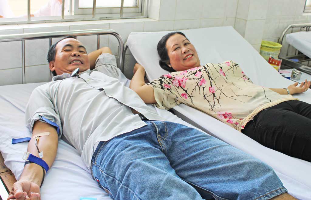 Vợ chồng anh Lộc, chị Loan hạnh phúc khi được hiến máu cứu người