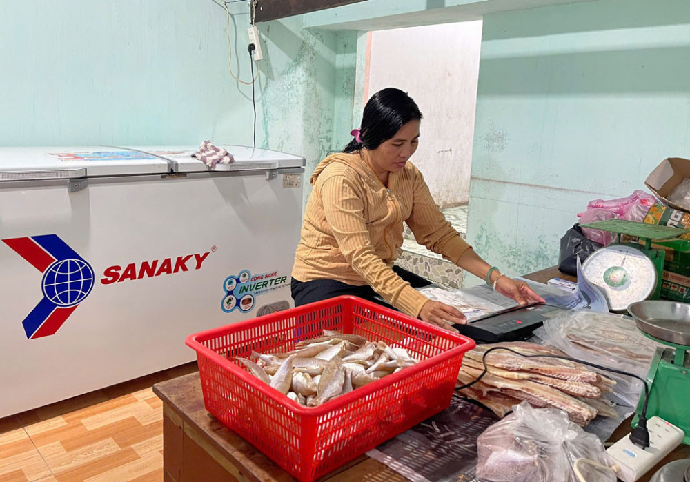 Nhờ khô ngon, bảo đảm chất lượng, hàng xóm không chỉ mua mà còn giới thiệu cho người quen. Nhờ đó, lượng khách ngày một tăng, anh chị có thêm động lực để vươn lên. Chị Hồng cho biết: “Mỗi ký khô bán ra, tôi lời khoảng 20.000 đồng. Những đợt cao điểm như Tết Nguyên đán vừa rồi, tôi bán hơn 400kg khô".