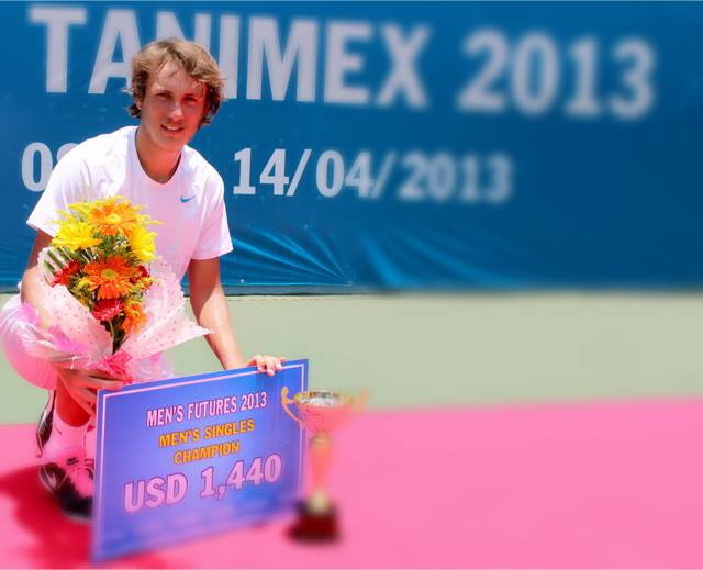 Lucas Pouille khi giành chức vô địch Giải Men's Futures tại cụm sân quần vợt Phú Thọ. Ảnh: Đ.H