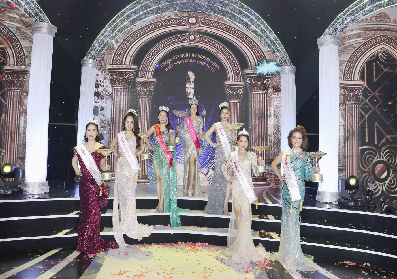 Kết thúc phần thi trình diễn, 6 thí sinh xuất sắc nhất đêm chung kết Hoa hậu Doanh nhân Việt Nam Toàn cầu 2022 bước vào vòng thi ứng xử.