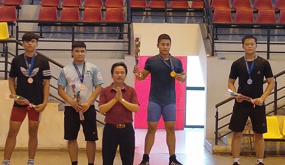 Vận động viên Long An (bìa trái) nhận Huy chương Đồng