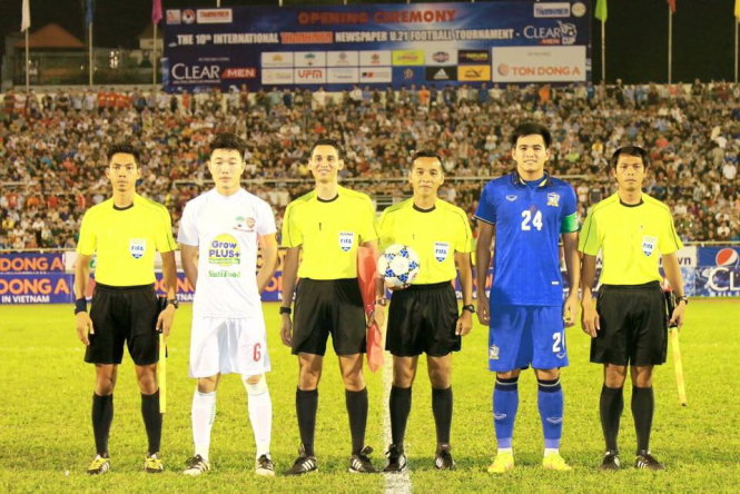 Trọng tài Suhaizi Bin Shukri (cầm bóng) tại Giải U-21 quốc tế ở TP.HCM năm 2016. Ảnh: Anh Huy