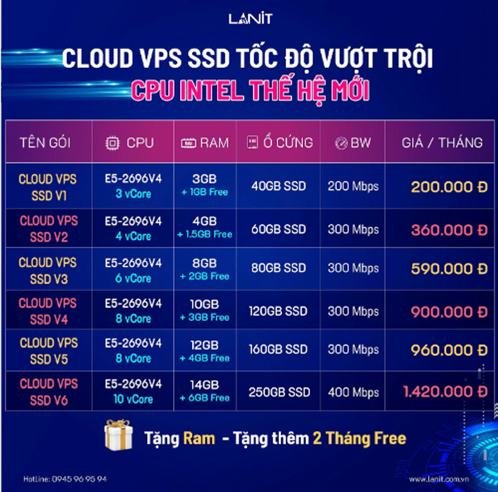 Trên đây là những thông tin về dịch vụ VPS tốc độ cao LANIT muốn gửi tới anh chị và các bạn. Nếu anh chị có nhu cầu thuê VPS SSD NVME, VPS giá rẻ, thuê server giá rẻ lưu trữ website hay có bất kỳ thắc mắc gì về dịch vụ, hãy liên hệ LANIT để nhận tư vấn tốt./.
