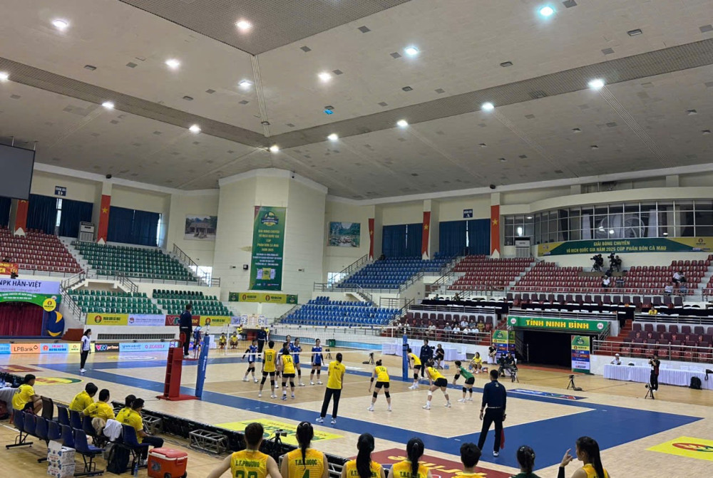 VTV Bình Điền Long An trong trận đấu với TP.HCM tại nhà thi đấu Ninh Bình