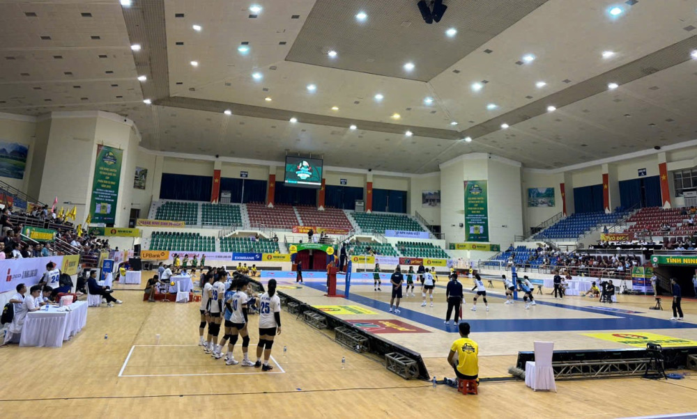 VTV Bình Điền Long An trong trận bán kết với Vietinbank tại nhà thi đấu Ninh Bình