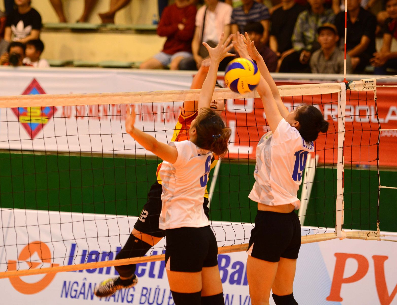 Pha đập bóng của chủ công Ánh Ngọc xuyên hàng chắn Tiến Nông Thanh Hóa