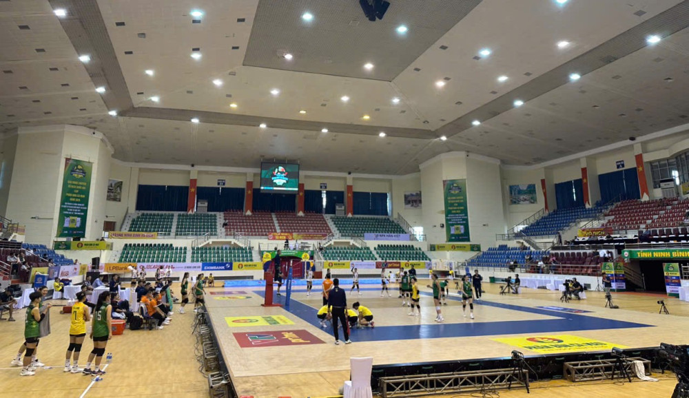VTV Bình Điền Long An trong trận đấu với HCĐG Lào Cai tại nhà thi đấu Ninh Bình