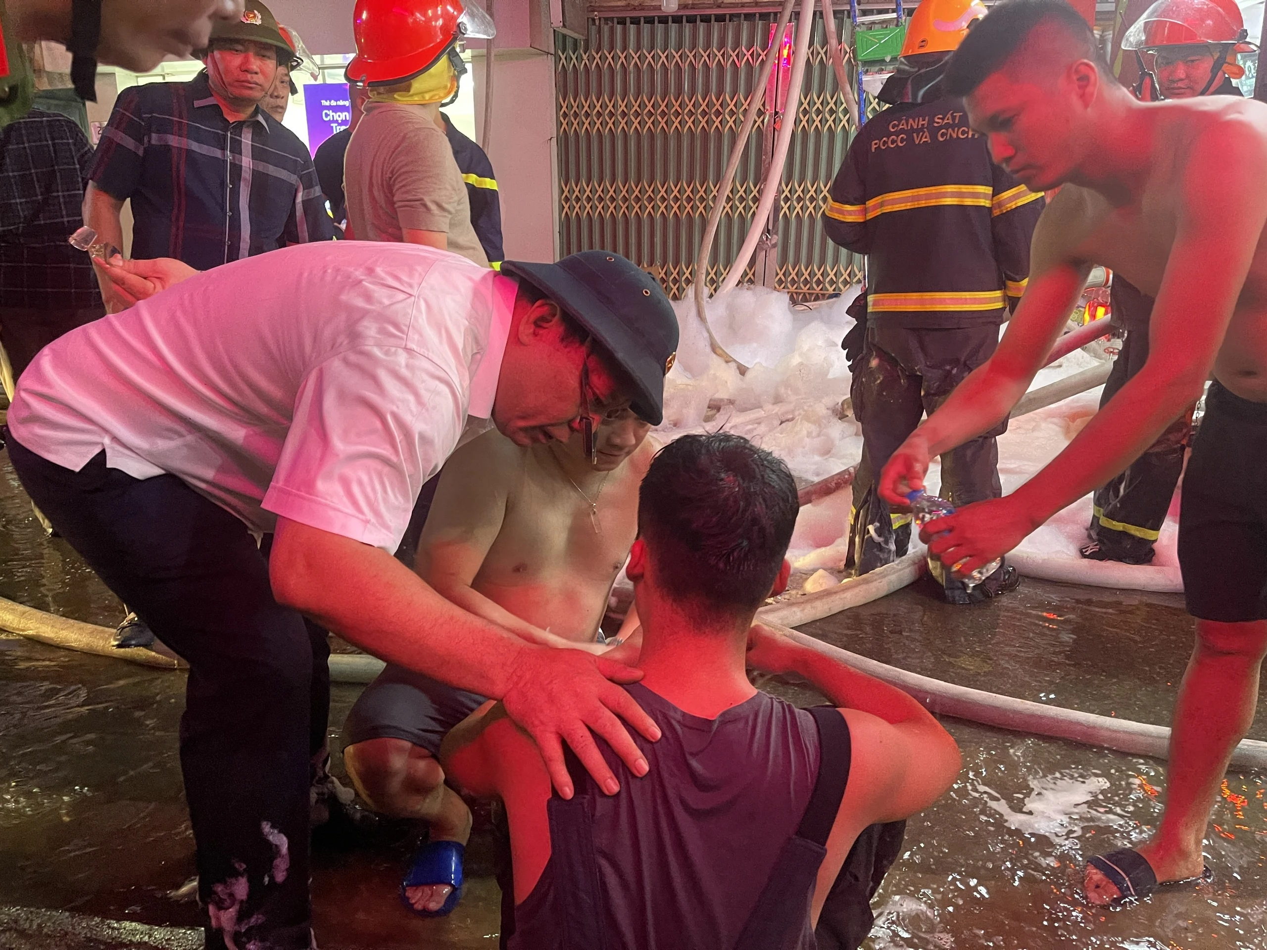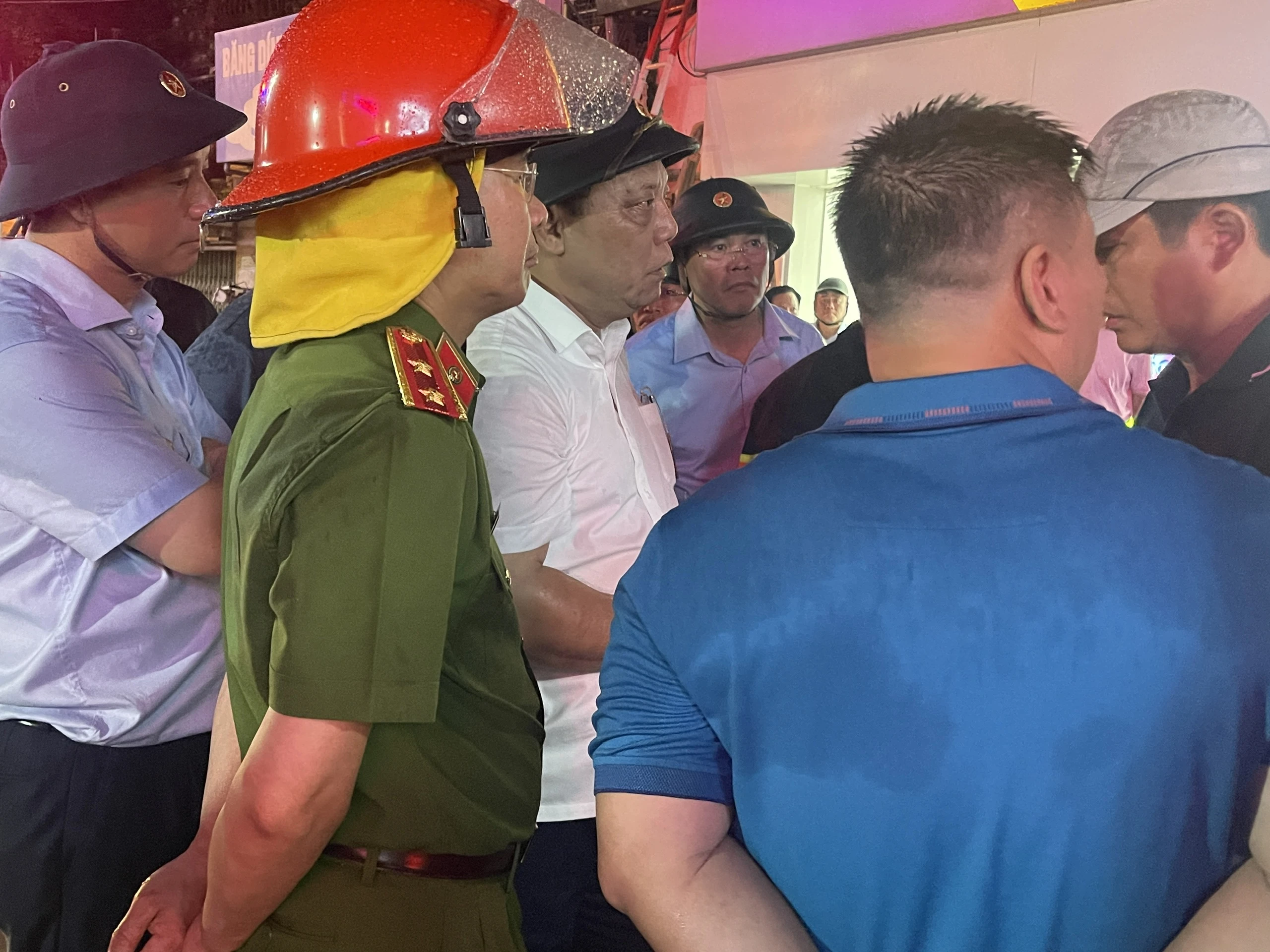 Trung tướng Nguyễn Hải Trung, Giám đốc Công an Hà Nội, động viên các cán bộ tham gia chữa cháy. (Ảnh: Đ.H)