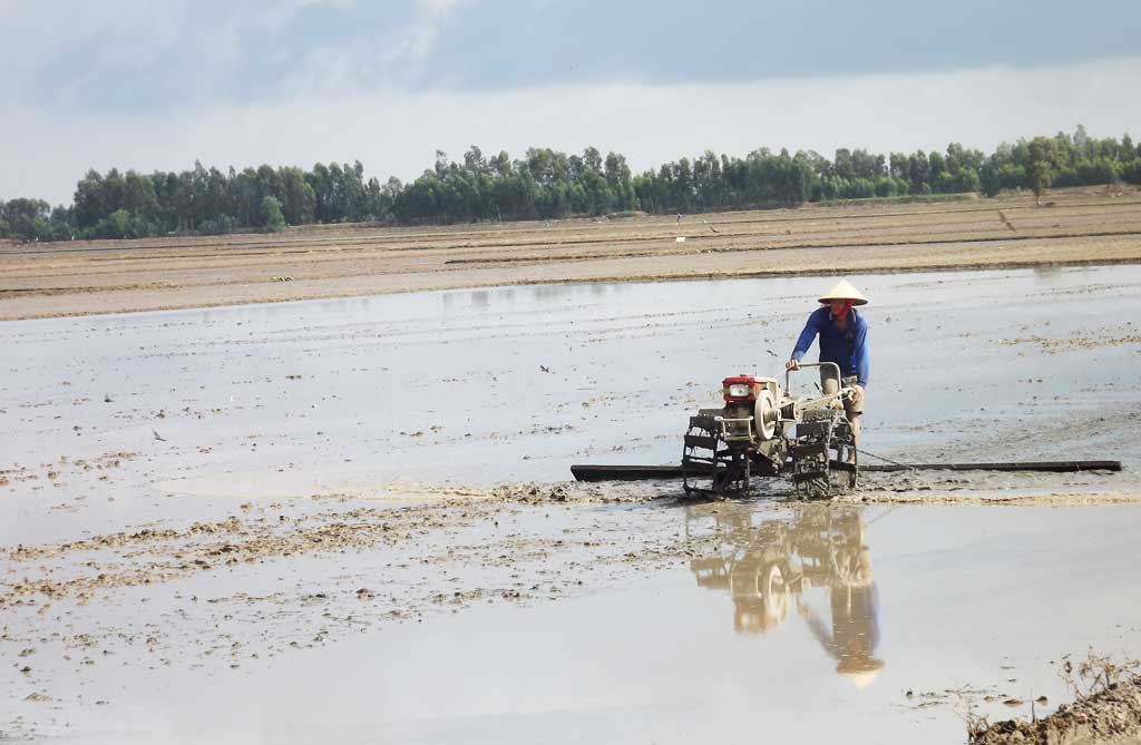 Nông dân làm đất chuẩn bị gieo sạ vụ lúa Đông Xuân 2016-2017