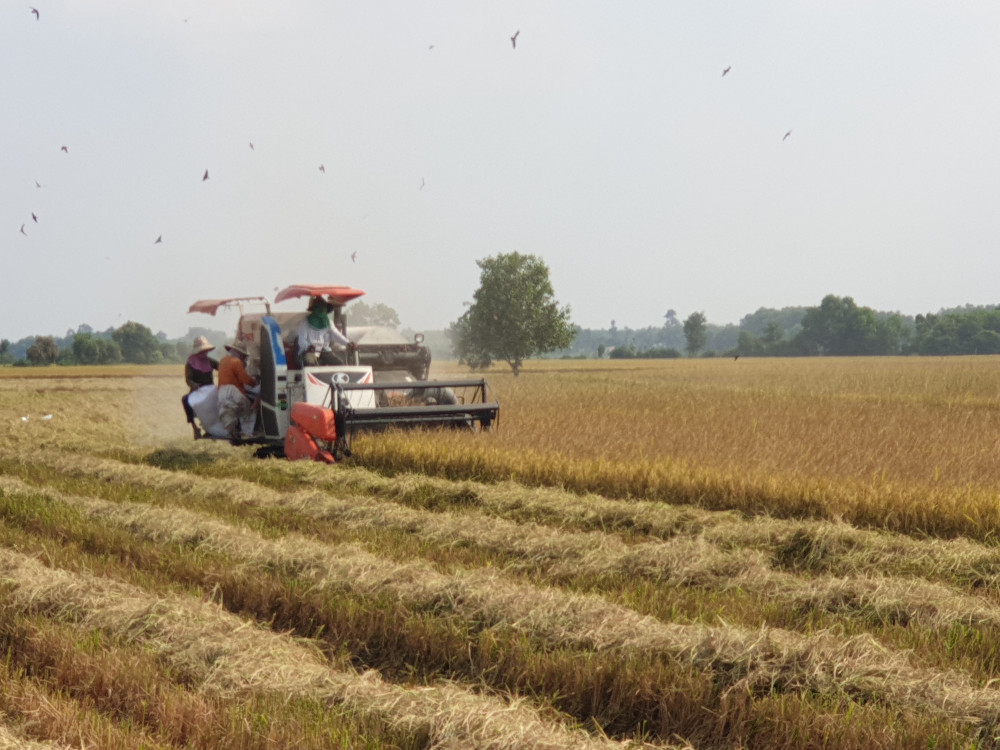 Nông dân xã Bến Cầu tất bật vào vụ thu hoạch lúa
