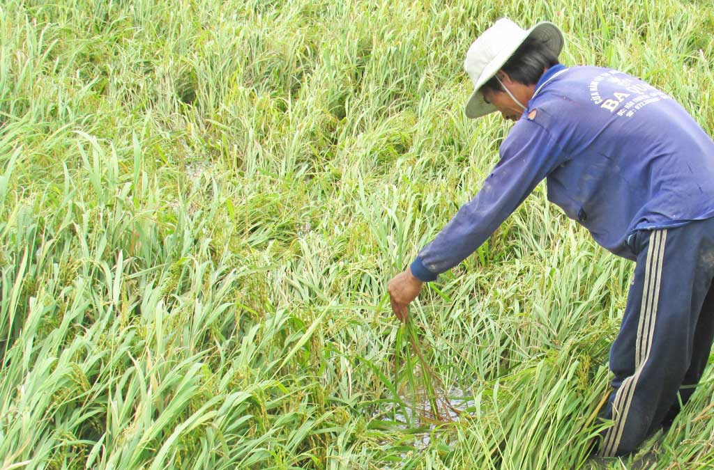 Lúa bị đổ ngã do mưa giông