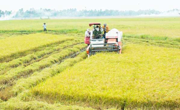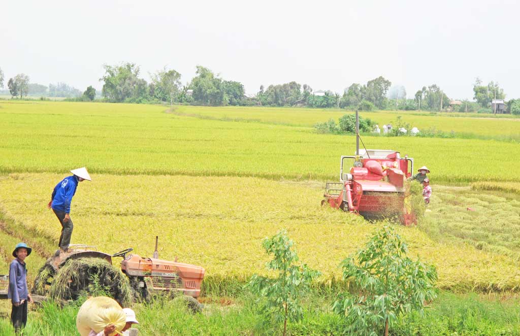 Nông dân thu hoạch lúa Hè Thu