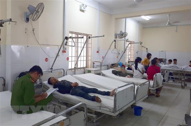 Các nạn nhân bị thương nhẹ đang được lực lượng công an lấy lời khai phục vụ cho công tác điều tra tại Bệnh viện Đa khoa tỉnh Khánh Hòa. (Ảnh: Phan Sáu/TTXVN)