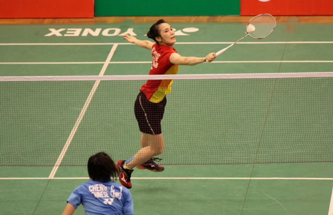 Một tình huống lên lưới ghi điểm của Vũ Thị Trang - Ảnh: T.P