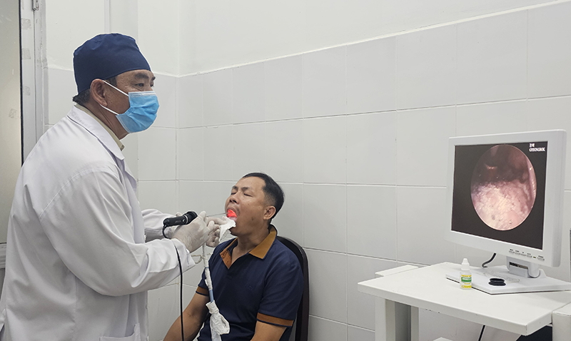 BS.CKII Lê Tiến Mãnh, Phó Giám đốc Bệnh viện Ung bướu TP Cần Thơ, nội soi cho người dân.