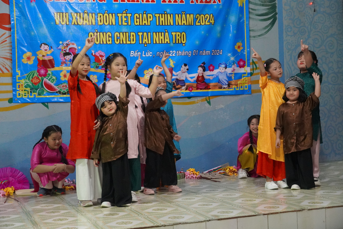 Trong bữa tiệc tất niên, CNLĐ còn được thưởng thức các tiết mục văn nghệ của CĐ viên, CNLĐ với các bài hát, múa chủ đề về mùa xuân, góp phần tạo không khí sôi nổi, vui tươi và giúp bữa tiệc tất niên càng thêm ấm áp, ý nghĩa. Đặc biệt, tại địa điểm tổ chức Chương trình Tất niên - Vui xuân đón tết Giáp Thìn năm 2024 cùng CNLĐ tại nhà trọ thuộc địa bàn xã Mỹ Yên, huyện Bến Lức còn có hoạt động bốc thăm trúng thưởng và có nhiều CNLĐ may mắn được nhận quà.