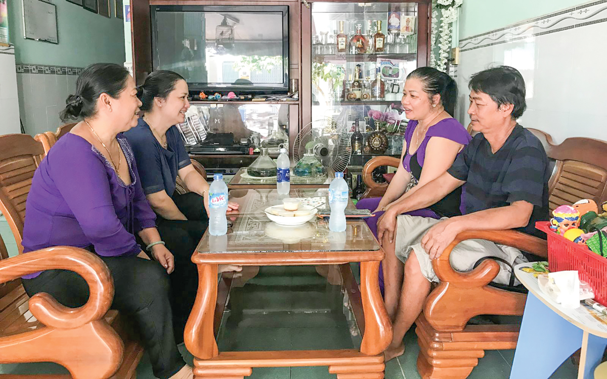 Cán bộ Hội LHPN phường Thới Bình và Chi hội phụ nữ khu vực 4 thăm vợ chồng cô Ngọc Điệp (hai người bên phải), thành viên tiêu biểu trong CLB Gia đình hạnh phúc.