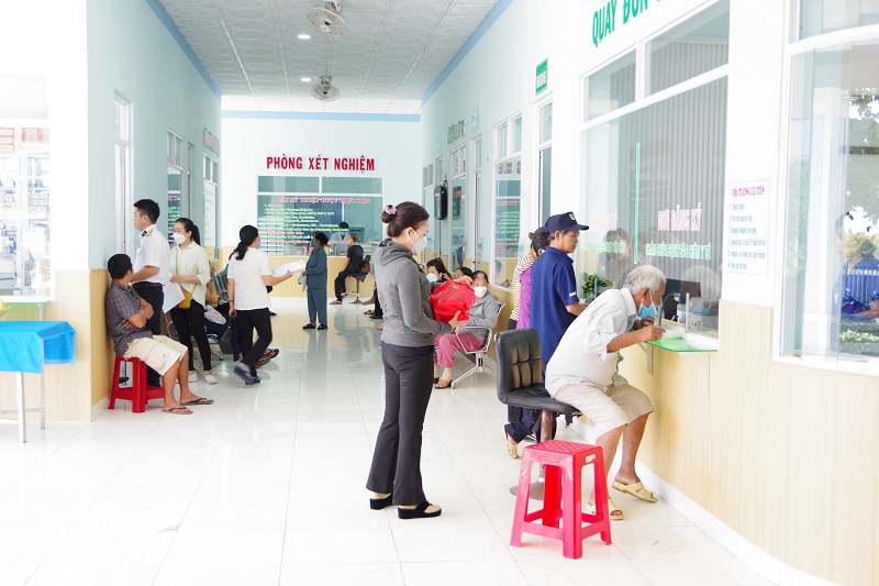 | Người dân làm thủ tục đăng ký khám bệnh tại Bệnh xá Lữ đoàn 101 |