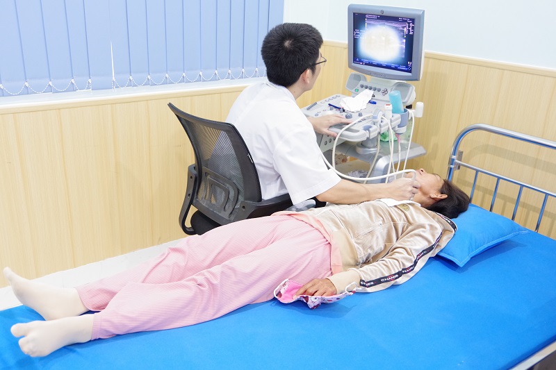 | Bác sỹ Nguyễn Văn Muộn, Chủ nhiệm quân y Lữ đoàn 101, Vùng 4 Hải quân siêu âm cổ họng cho người dân. |