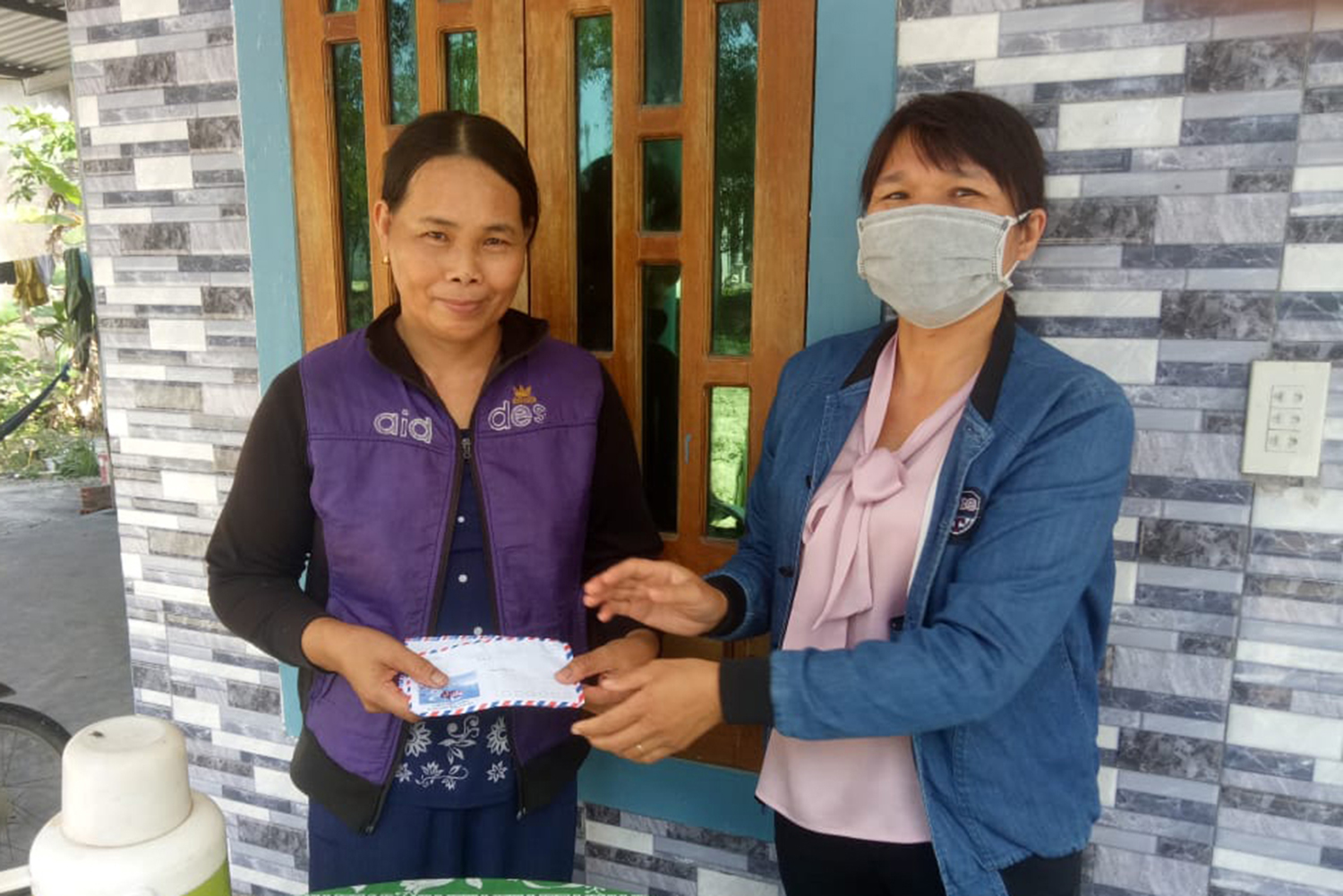 | Chị Nguyễn Thị Bé, Chủ tịch Câu lạc bộ “Vùng đạo bình yên” trao hỗ trợ của Câu lạc bộ cho gia đình giáo dân Nguyễn Thị Nguyệt, gặp khó khăn đột xuất. Ảnh Huy Cường. |