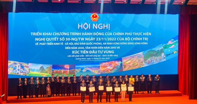 Trong khuôn khổ hội nghị ngày 12/2, triển khai Chương trình hành động của Chính phủ thực hiện Nghị quyết số 30-NQ/TW của Bộ Chính trị về phát triển kinh tế - xã hội, bảo đảm quốc phòng, an ninh vùng Đồng bằng sông Hồng đến năm 2030, tầm nhìn đến năm 2045, Bộ Kế hoạch và Đầu tư đã công bố các văn kiện, gồm các thỏa thuận hợp tác/thư bày tỏ quan tâm tài trợ; giấy chứng nhận đầu tư, biên bản ghi nhớ của các địa phương và các doanh nghiệp, đối tác trong và ngoài nước với 11 tỉnh trong vùng.