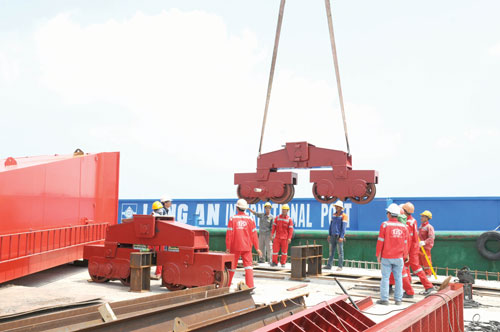 Cảng Long An đặt cần cẩu đầu tiên, chào mừng Đại hội Đại biểu Đảng bộ tỉnh lần thứ X