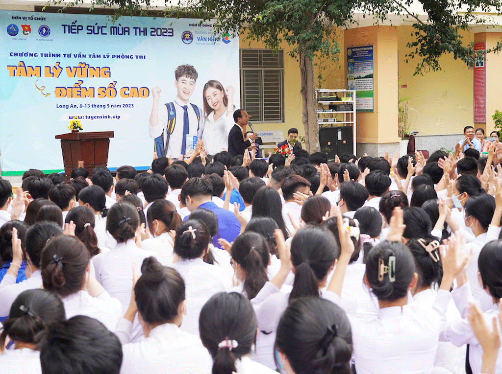 Chiều cùng ngày, Chương trình Tư vấn tâm lý mùa thi cho học sinh các trường THPT trên địa bàn tỉnh năm 2023 tiếp tục diễn ra tại Trường THPT Tân An và Trường TH, THCS &THPT Hà Long (TP.Tân An) với tổng số gần 650 học sinh tham dự.