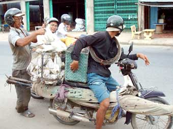 | Người dân huyện Châu Thành (An Giang) chở cò bắt được đem đi bán. Ảnh: P. KIỀU |