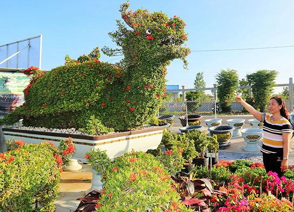 Cây bông trang là loại hoa kiểng quen thuộc ở Nam bộ, rất dễ trồng và chăm sóc. Theo các nghệ nhân, chỉ cần tưới nước vừa đủ, kiểm soát sâu ăn lá, là cây cho hoa quanh năm, rất đẹp mắt. Tùy kích cỡ, độ khó tạo hình mà kiểng thú bông trang có giá dao động từ vài trăm ngàn đồng đến vài trăm triệu đồng.