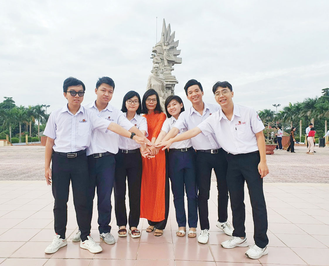 Cô Phan Thị Liên và các thành viên đội tuyển học sinh giỏi quốc gia. (Ảnh tư liệu)