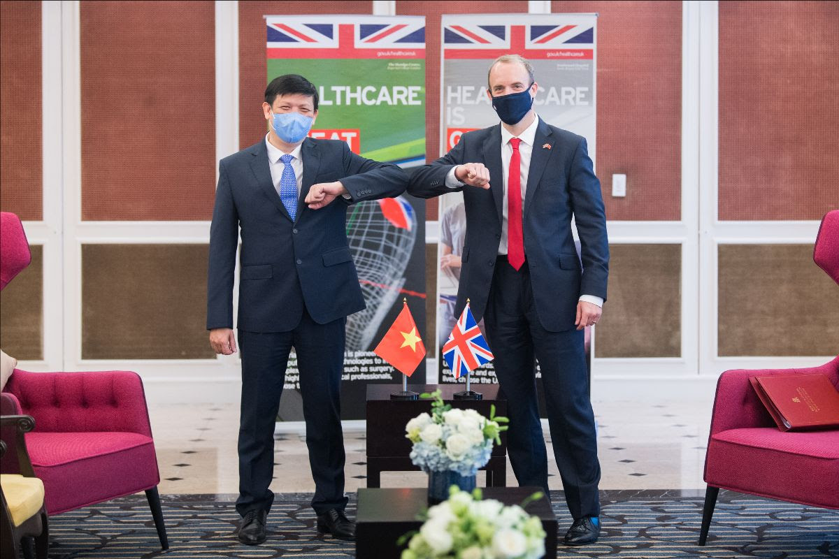 | Quyền Bộ trưởng Bộ Y tế Việt Nam, GS. TS. Nguyễn Thanh Long và Phó Thủ tướng, Bộ trưởng Ngoại giao và Phát triển Anh Dominic Raab |