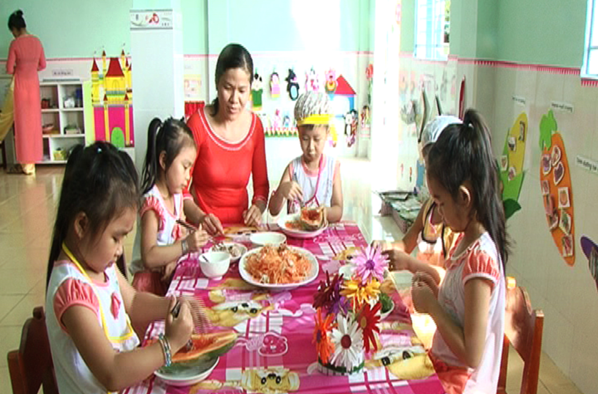 Quá trưa nhưng các cô giáo Trường Mầm non Định Môn vẫn luân phiên dọn dẹp khuôn viên trường, sửa sang, trang trí lại phòng học. Cô Đoàn Thị Phương Giang, Hiệu trưởng nhà trường, cho biết: “Từ hơn tháng nay, vào cuối tuần các cô đều có mặt tại điểm trung tâm để chuẩn bị phòng lớp, đồ dùng dạy học cho năm học mới 2018-2019. Năm nay, Trường vừa nâng cấp 4 phòng học, có thêm 5 phòng chức năng mới; đủ điều kiện để chăm sóc - nuôi dạy cho khoảng 450 trẻ. Hiện trường đã huy động được trên 85% trẻ mầm non 5 tuổi ra lớp”. Ngoài điểm trung tâm, 2 điểm lẻ của trường ở ấp Định Phước và ấp Định Hòa cũng được chuẩn bị sẵn sàng cho năm học mới.