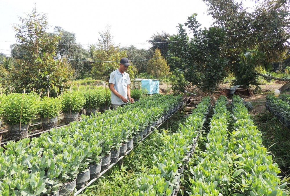 Trồng hoa kiểng tại HTX Hoa kiểng Tân Long A, huyện Phong Điền.