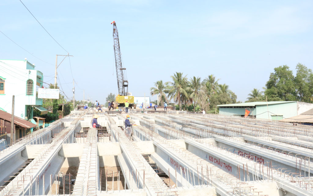 Gói thầu số 9 (công trình cầu Bà Tượng, nằm trên Đường tỉnh 830, đoạn qua huyện Cần Đước), phần cầu đang được tập trung thi công