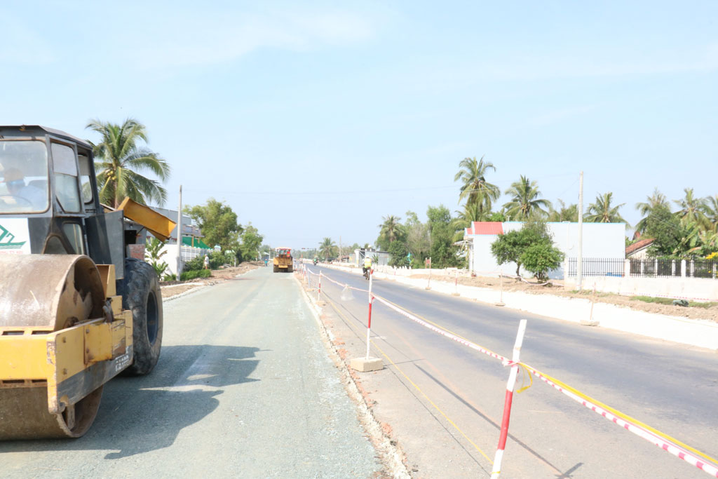 2. Cách gói thầu số 9 không xa, công nhân thi công gói thầu số 10, thuộc giai đoạn 2 của công trình Đường tỉnh 830 cùng máy móc, thiết bị “dàn trận” tạo cho công trường một khí thế làm việc nhộn nhịp. Dường như, tất cả công nhân đều quen với công việc cũng như thời tiết nắng nóng.