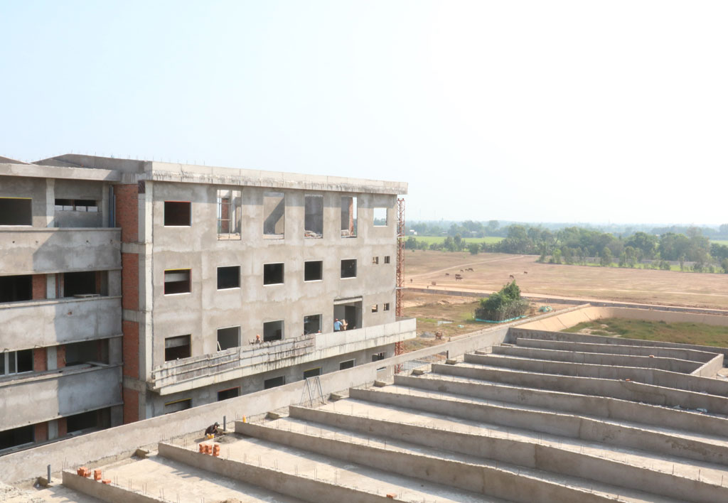 Công nhân tập trung thi công, sớm đưa công trình Bệnh viện Đa khoa khu vực Đồng Tháp Mười vào sử dụng