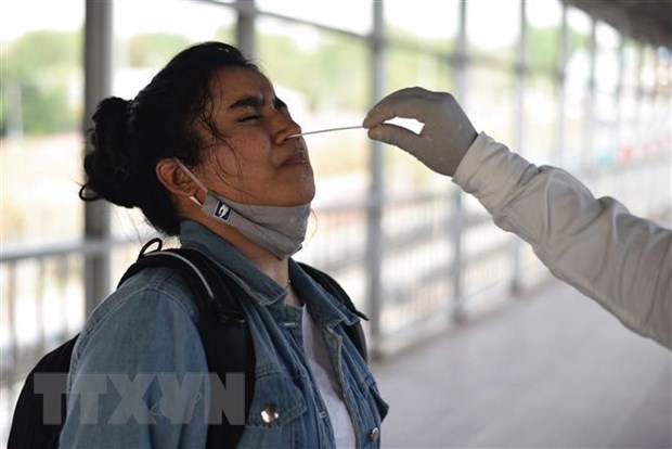 Nhân viên y tế lấy mẫu xét nghiệm COVID-19 cho người dân tại Prayagraj, Ấn Độ. (Ảnh: THX/TTXVN)