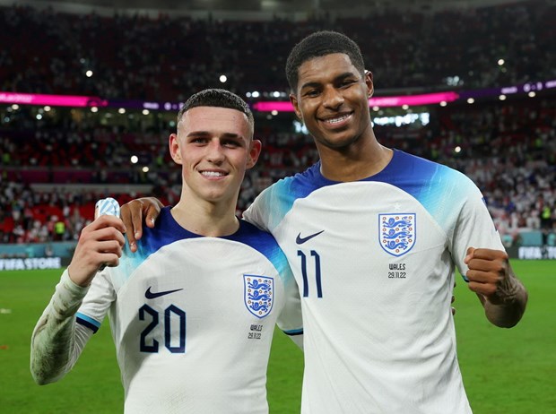Cầu thủ Phil Foden (Manchester City) và Marcus Rashford (Manchester United) đang có phong độ tốt tại đội tuyển Anh ở World Cup 2022. (Nguồn: The FA)