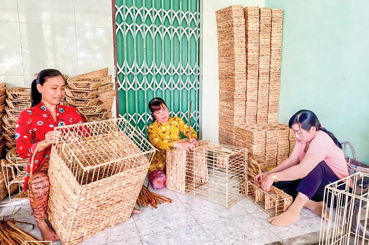 Nghề đan đát lục bình giúp chị em phụ nữ ở ấp Thạnh Quới 1, xã Hỏa Lựu có thêm thu nhập ổn định.