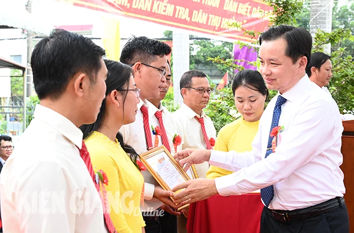 Dịp này, Chủ tịch UBND tỉnh Kiên Giang tặng bằng khen 2 tập thể 8 cá nhân có thành tích xuất sắc trong phong trào thi đua “Kiên Giang chung sức xây dựng nông thôn mới” giai đoạn 2021-2025...